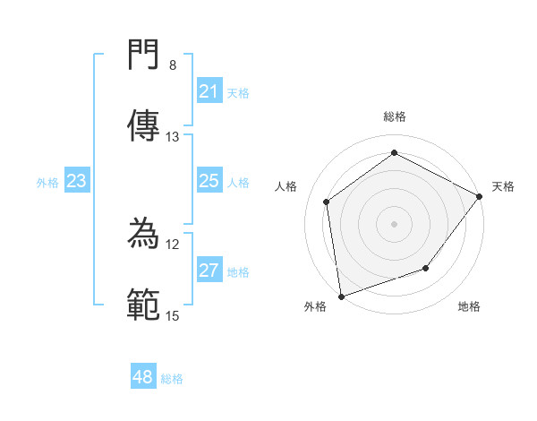 門傳 為範さんの天格は21画の5点!