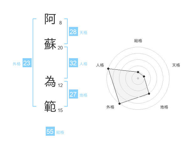 阿蘇 為範さんの総格は55画の1点!