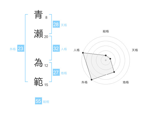 青瀬 為範さんの外格は23画の5点!