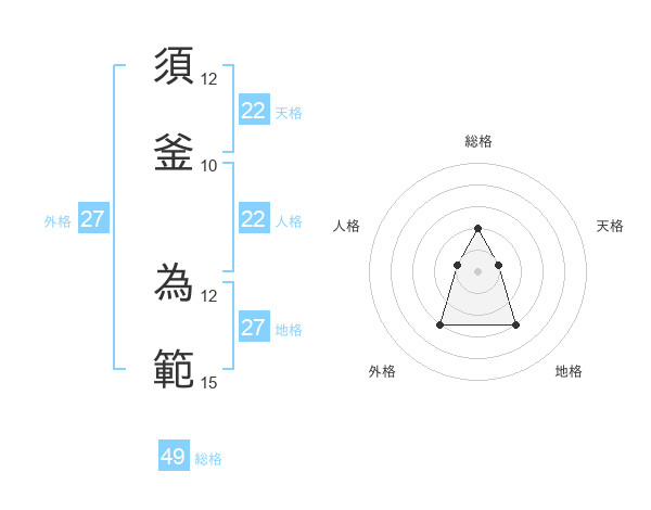 須釜 為範さんの地格は27画の3点!