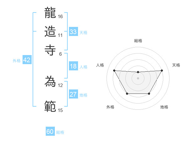 龍造寺 為範さんの総格は60画の1点!