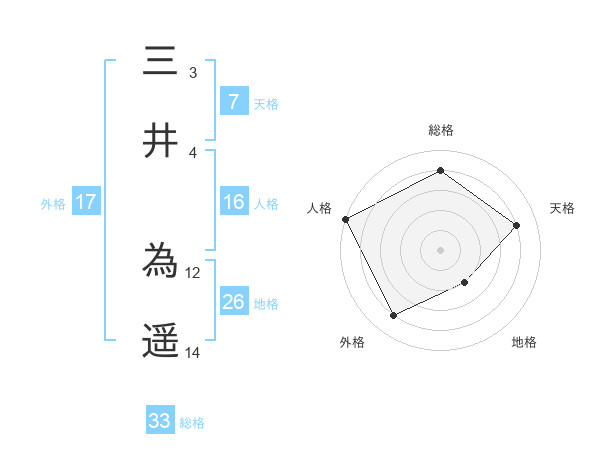 三井 為遥さんの総格は33画の4点!