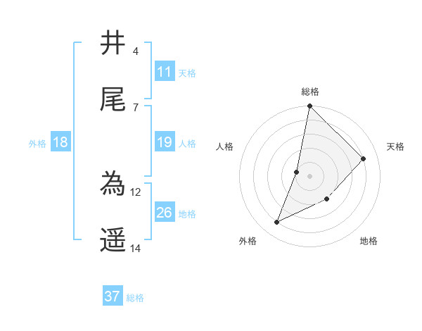 井尾 為遥さんの総格は37画の5点!