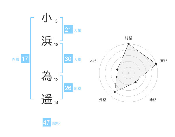 小浜 為遥さんの天格は21画の5点!
