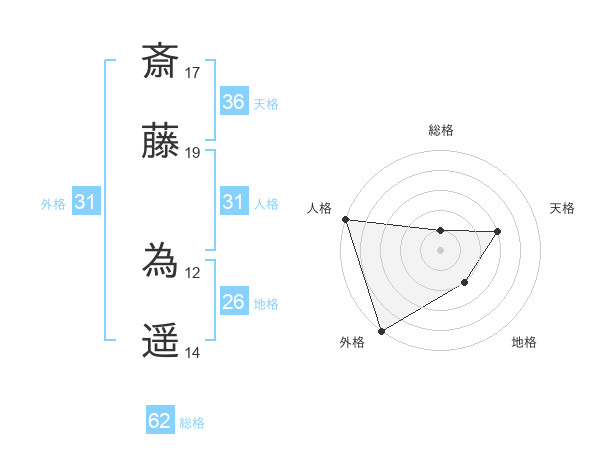 斎藤 為遥さんを姓名の画数から五運を鑑定