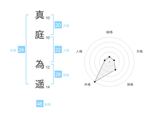 真庭 為遥さんの総格は46画の1点!
