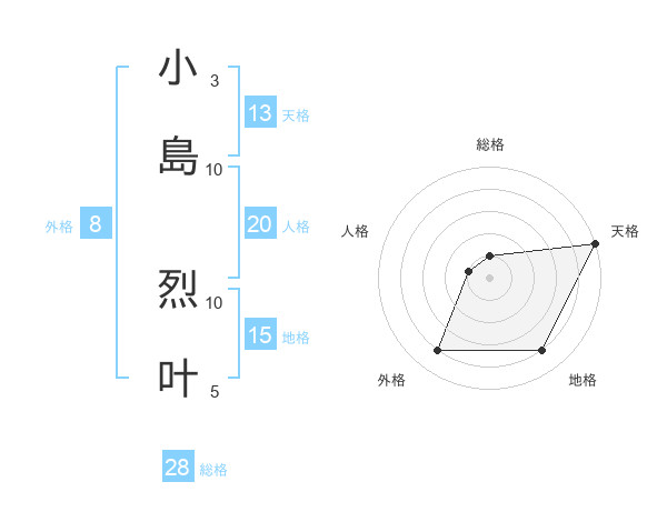 小島 烈叶さんの天格は13画の5点!