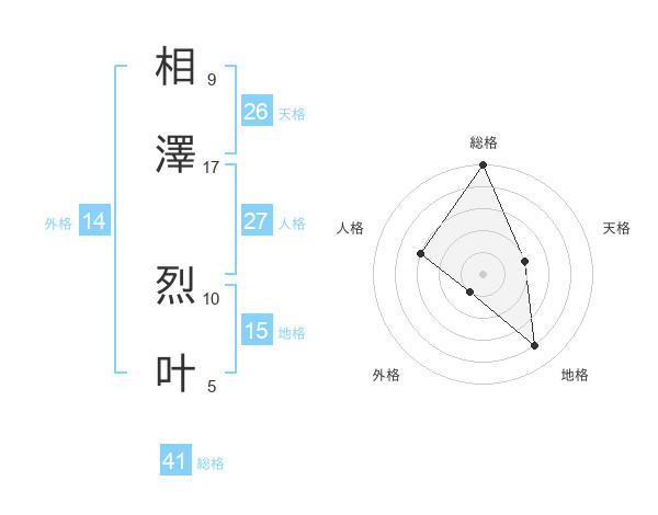 相澤 烈叶さんの天格は26画の2点!