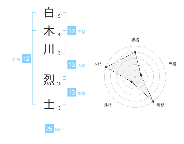 白木川 烈士さんを姓名の画数から五運を鑑定
