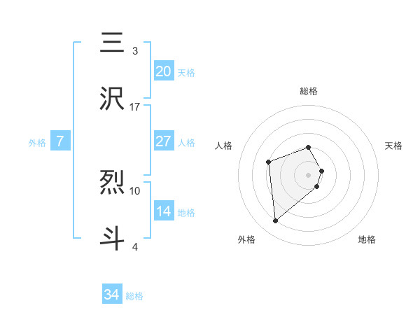 三沢 烈斗さんを姓名の画数から五運を鑑定
