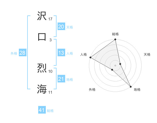 沢口 烈海さんを姓名の画数から五運を鑑定