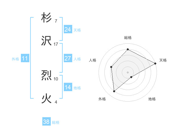 杉沢 烈火さんを姓名の画数から五運を鑑定
