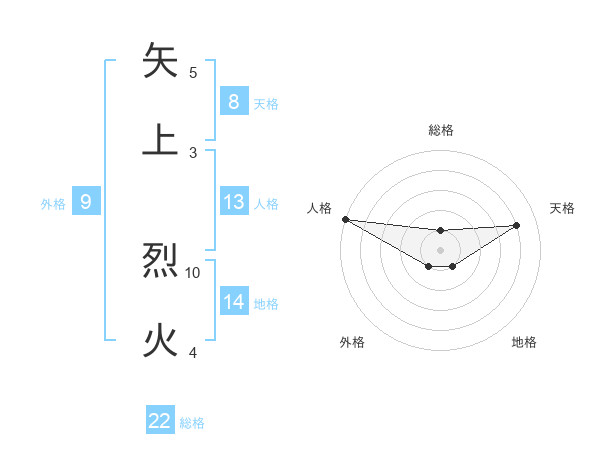 矢上 烈火さんの総格は22画の1点!