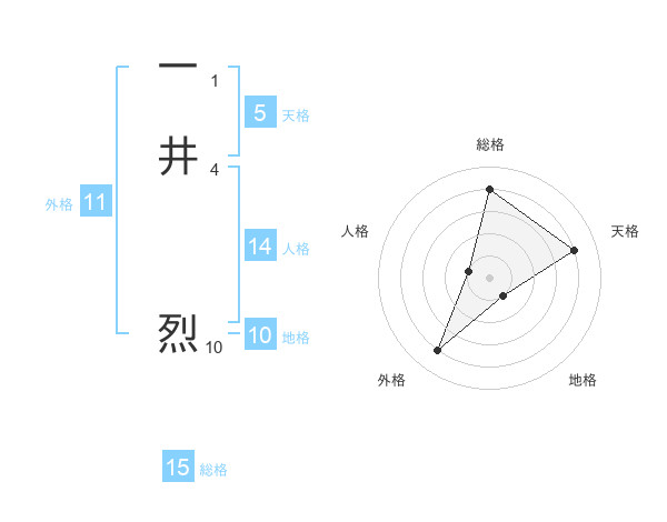 一井 烈さんの総格は15画の4点!