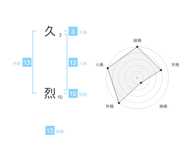 久 烈さんの総格は13画の5点!