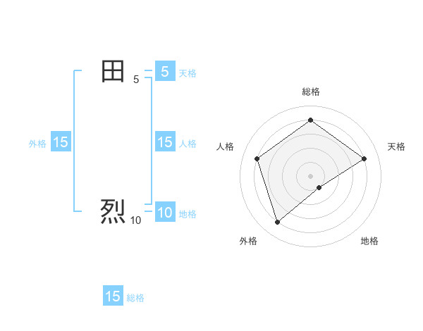 田 烈さんの総格は15画の4点!