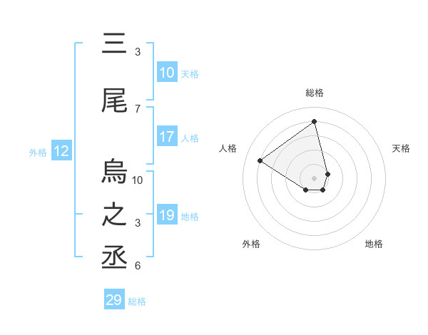 三尾 烏之丞さんを姓名の画数から五運を鑑定