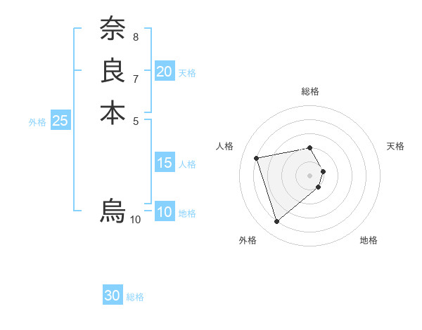 奈良本 烏さんを姓名の画数から五運を鑑定