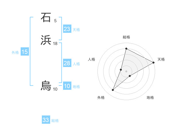 石浜 烏さんの天格は23画の5点!