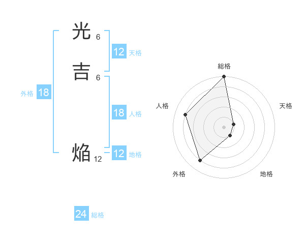 光吉 焔さんの総格は24画の5点!