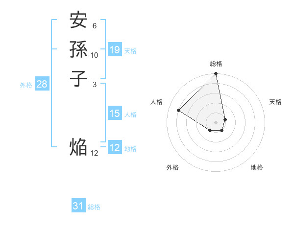 安孫子 焔さんの総格は31画の5点!
