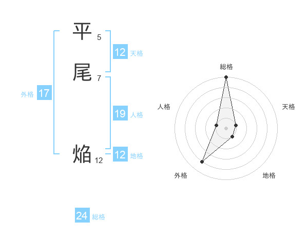 平尾 焔さんの総格は24画の5点!