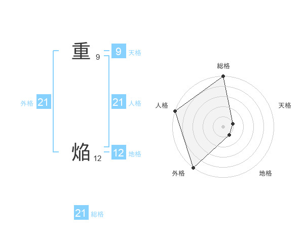 重 焔さんの外格は21画の5点!