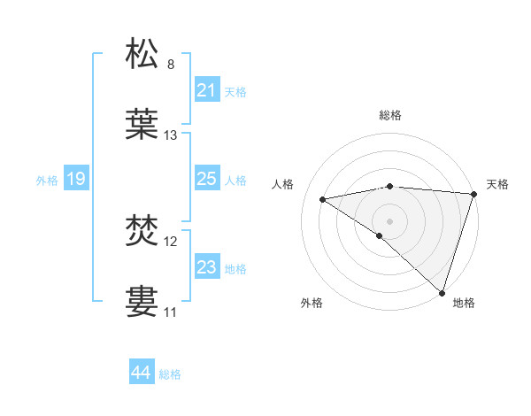 松葉 焚婁さんを姓名の画数から五運を鑑定