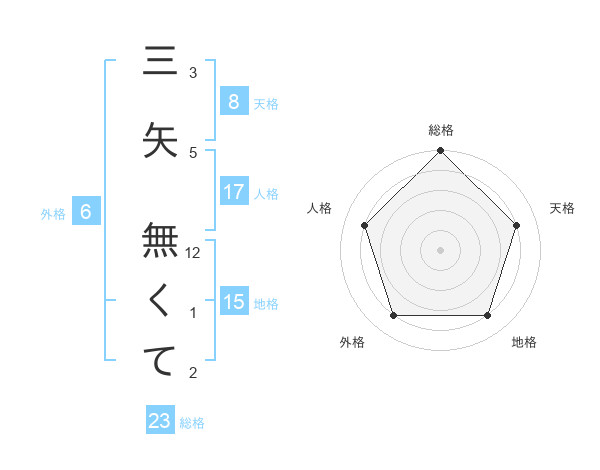 三矢 無くてさんの地格は15画の4点!