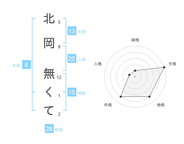 北岡 無くてさんを姓名の画数から五運を鑑定