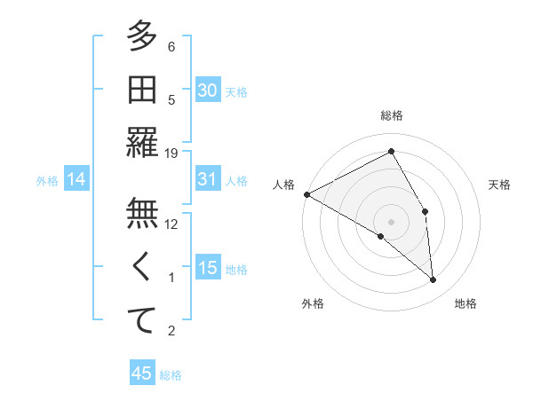 多田羅 無くてさんの総格は45画の4点!