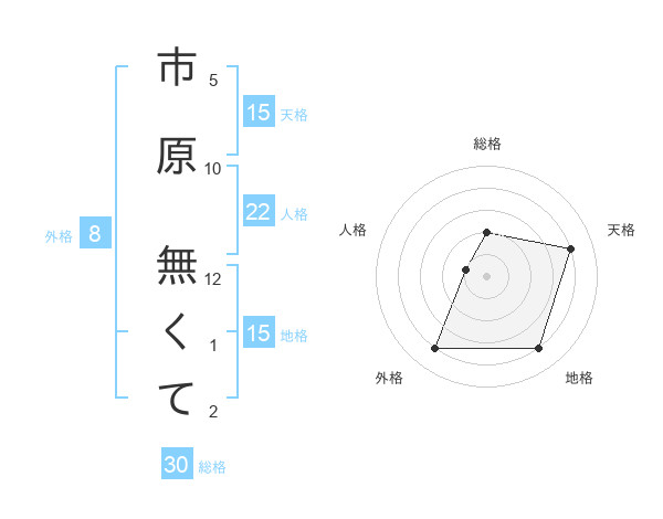 市原 無くてさんの地格は15画の4点!