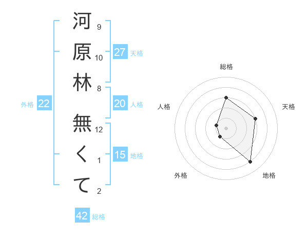 河原林 無くてさんを姓名の画数から五運を鑑定