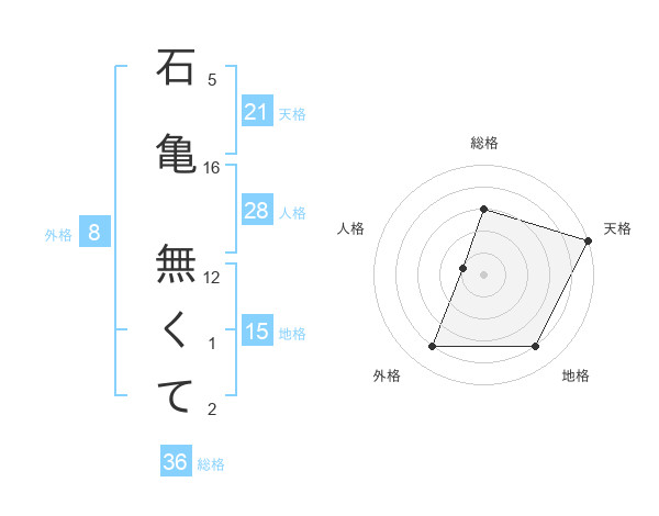 石亀 無くてさんを姓名の画数から五運を鑑定