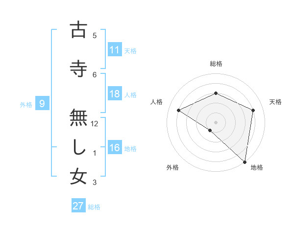 古寺 無し女さんを姓名の画数から五運を鑑定