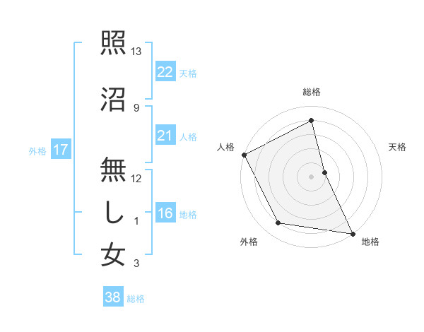 照沼 無し女さんを姓名の画数から五運を鑑定