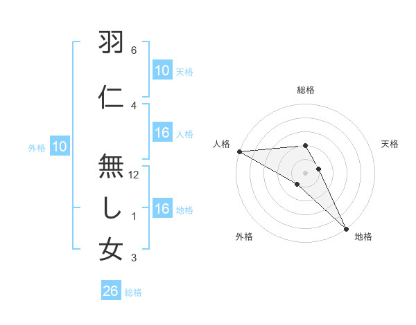 羽仁 無し女さんを姓名の画数から五運を鑑定