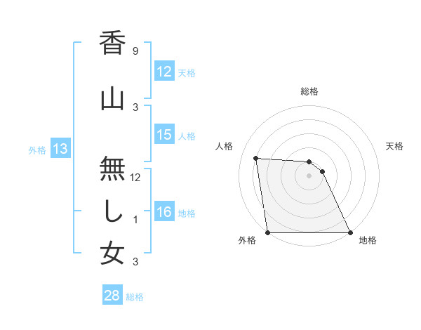 占い結果は姓名判断である以上、良い場合も悪い場合もありますが、決してお名前を誹謗中傷するものでなく、画数の自動計算によって得られたものです。また、本サイトの検索によって得られた鑑定結果で、第三者を誹謗中傷したり名誉を棄損するような行為を禁じます。