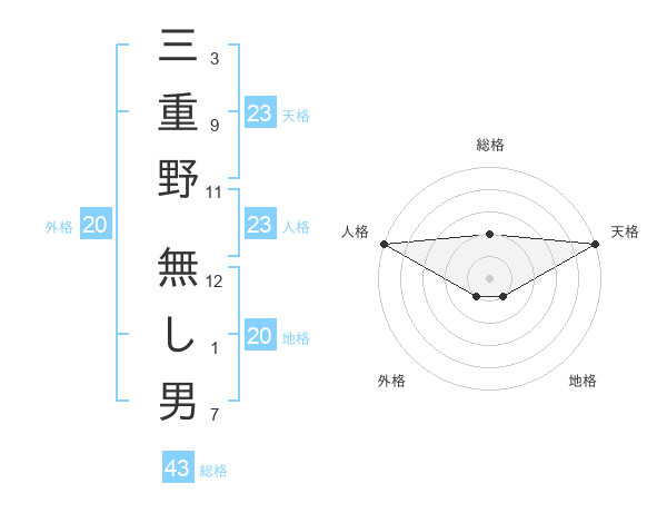 三重野 無し男さんを姓名の画数から五運を鑑定