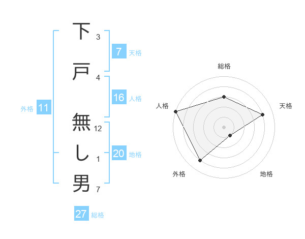 下戸 無し男さんを姓名の画数から五運を鑑定