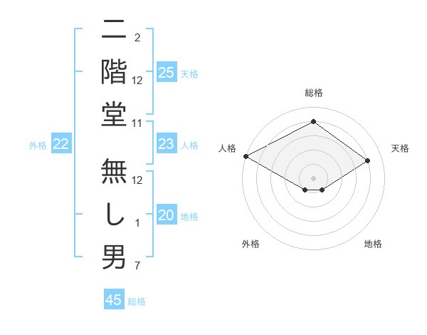 二階堂 無し男さんを姓名の画数から五運を鑑定
