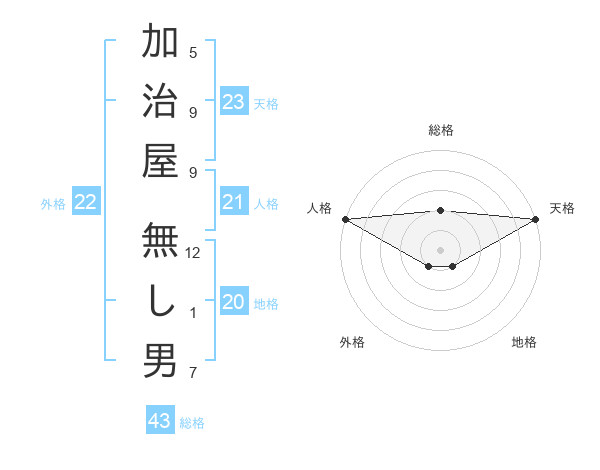 加治屋 無し男さんを姓名の画数から五運を鑑定
