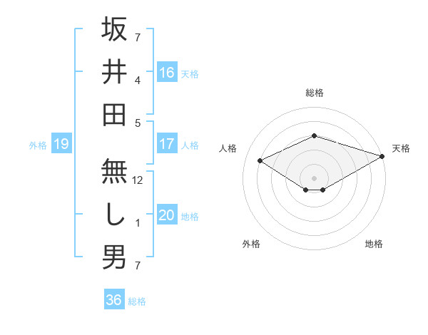坂井田 無し男さんを姓名の画数から五運を鑑定
