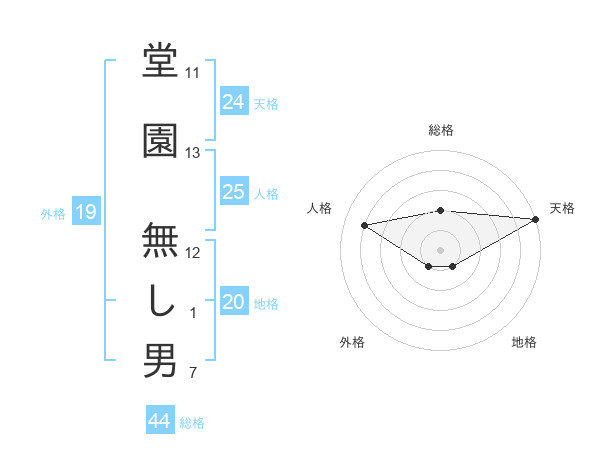 堂園 無し男さんを姓名の画数から五運を鑑定