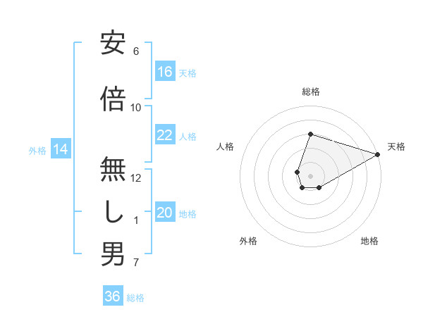 安倍 無し男さんを姓名の画数から五運を鑑定