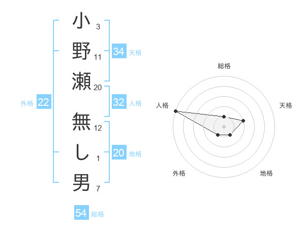小野瀬 無し男さんを姓名の画数から五運を鑑定