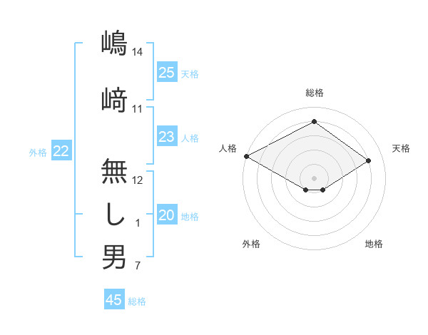 嶋﨑 無し男さんを姓名の画数から五運を鑑定