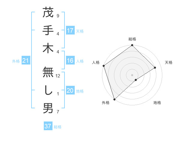 茂手木 無し男さんを姓名の画数から五運を鑑定