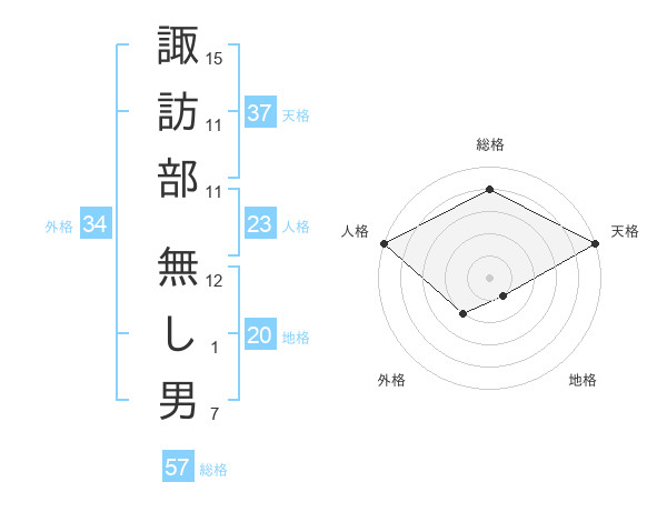 諏訪部 無し男さんを姓名の画数から五運を鑑定