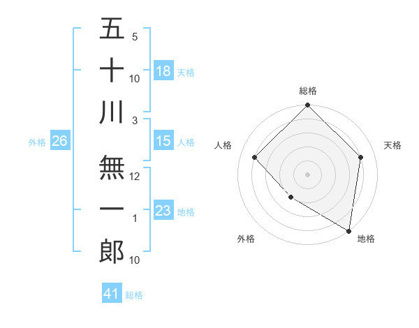 五十川 無一郞さんを姓名の画数から五運を鑑定